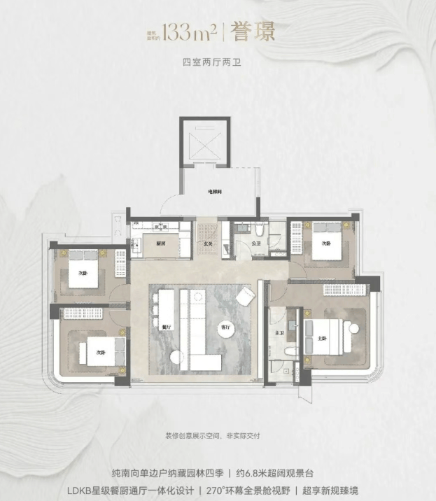 【誉璟】:建筑面积约133㎡,四室两厅两卫,使用率接近100%