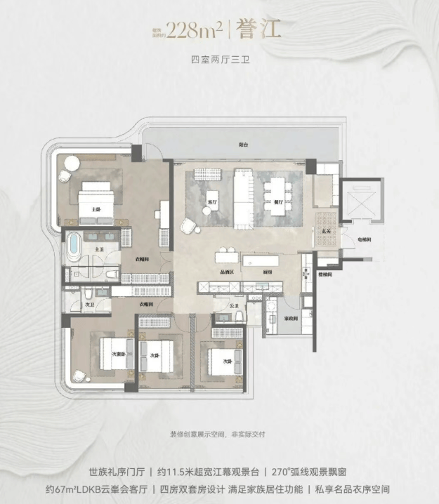 【誉江】:建筑面积约228㎡,四室两厅三卫,使用率接近100%