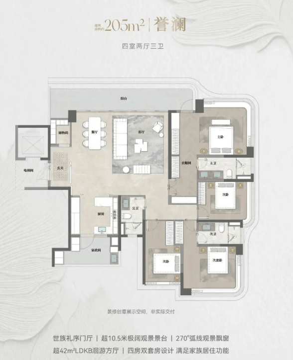 【誉澜】:建筑面积约205㎡,四室两厅三卫,使用率接近100%