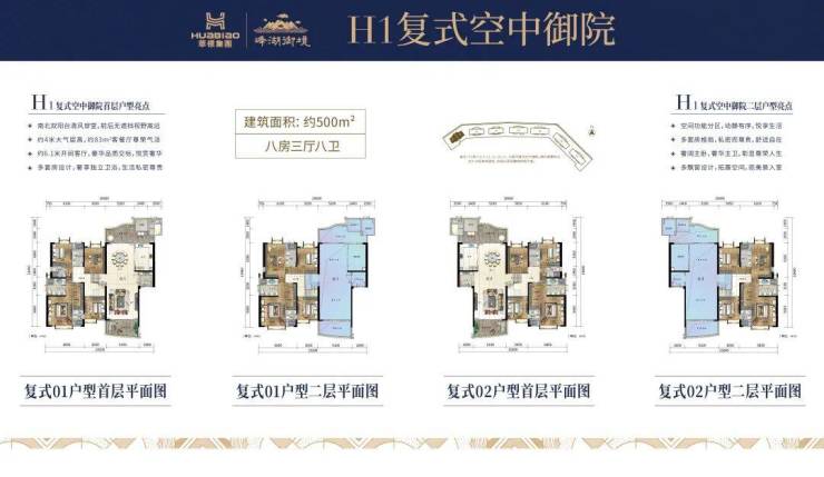 建筑面积约500㎡复式 八房三厅八卫