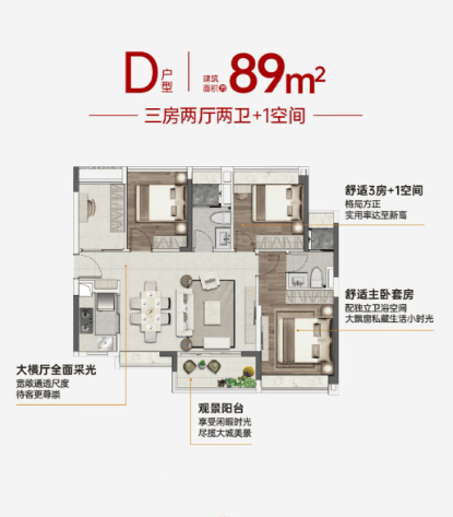 项目推出的户型面积从69平方米到110平方米不等,涵盖了三至五房的设计,能够满足不同家庭结构的需求。其中,85平方米的四房两卫户型以其高效的使用率和舒适的居住体验受到了市场的广泛好评。紧凑而实用的设计理念使得即使小面积也能实现大功能,降低了购房门槛。
