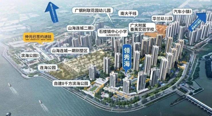 此外,周边还有广大附中番禺实验学校、石楼镇中心小学山海连城学校、华师大幼儿园、广钢利联幼儿园等,形成0–15岁教育链条。虽然部分学校仍在建设中,但优质教育资源的集中导入,为区域长期价值奠定基础。