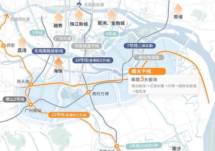 目前,保利领秀海主要依赖自驾出行。项目距南大干线仅750米,通过该主干道可快速连接广州南站、万博CBD、大学城及创新湾;周边还有新化快速、华南快速等路网支撑,日常通勤效率较高。