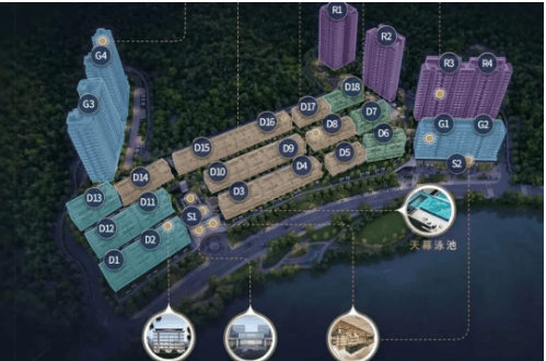项目整体定位为高端改善型社区,以 “湖山院墅” 为核心特色,规划布局注重自然景观与居住舒适度的融合。18 栋叠院沿凤凰湖一线分布,4 栋小高层错落排布,确保多数房源能享受湖山景观。社区建筑风格简约大气,与周边自然环境相得益彰,3.3 米楼层高提升居住空间通透感,得房率达 80%,空间利用率高。