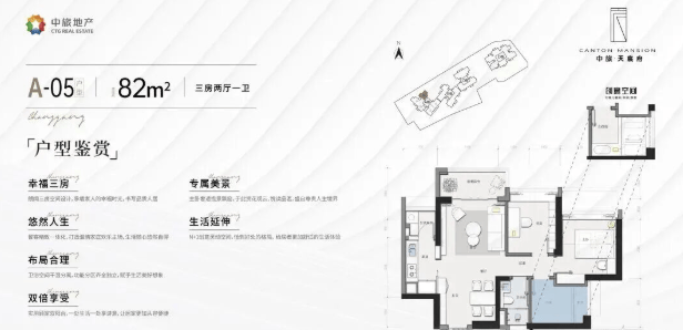 82㎡三房两厅一卫:最低门槛留在城芯,视野无遮挡。