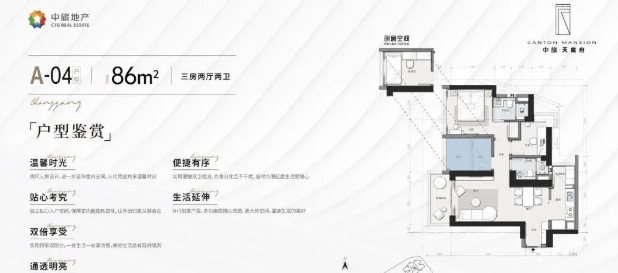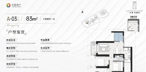 83㎡三房两厅一卫:广州一手楼盘唯一南向望江小户型。