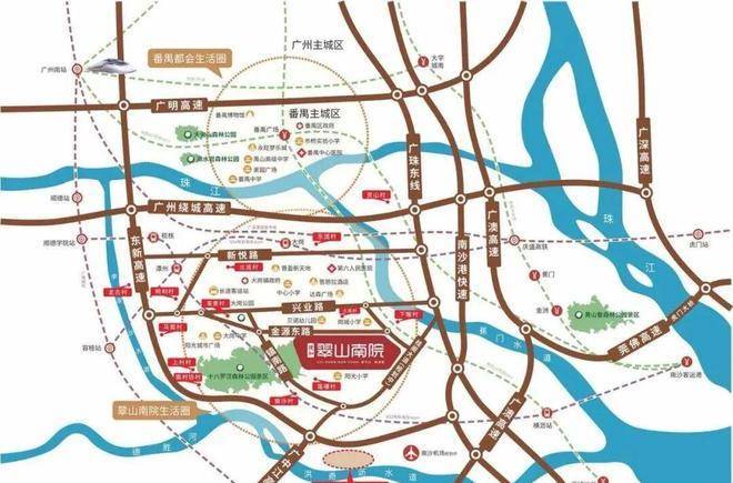 从区位交通来看,翠山南院位于大岗板块核心地段,整体交通网络较为成熟。项目通过区域内三纵四横的主干交通体系,可快速连接番禺市桥、南沙区府以及广佛城市生活圈。驾车前往市桥核心商圈大约需要三十分钟左右车程,前往广州其他主城区也可通过高速路网实现较为顺畅的通行。随着区域城市化进程推进,未来该片区的路网密度与公共交通配套仍有提升空间,区域价值存在一定成长潜力。对于需要在广州南部区域长期居住并兼顾城市通勤的人群而言,这种距离城市核心但又保持自然环境优势的区位布局,往往具有较强吸引力。