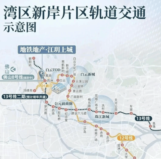江玥上城享有优越的交通条件,临近地铁12号线西洲站和13号线二期凰岗站,其中凰岗站直接与社区无缝衔接。未来还将建成地下通道直达珠江新城,无需换乘即可畅达市中心。此外,已开通运营的白云站汇聚多条轨道交通线路,并配备6条地铁线路,形成多层次公共交通枢纽,为居民出行提供了极大的便利。