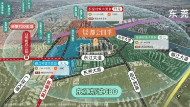 旧改前景广阔:周边三条村旧改稳步推进,东江新城规划带来巨大发展潜力。