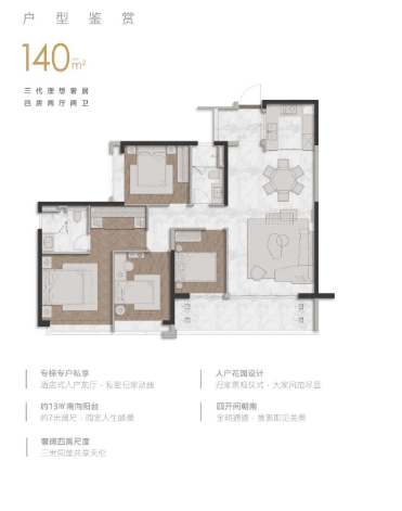 南 B 区住宅在售建筑面积:140㎡、190㎡、200㎡、260㎡、270㎡