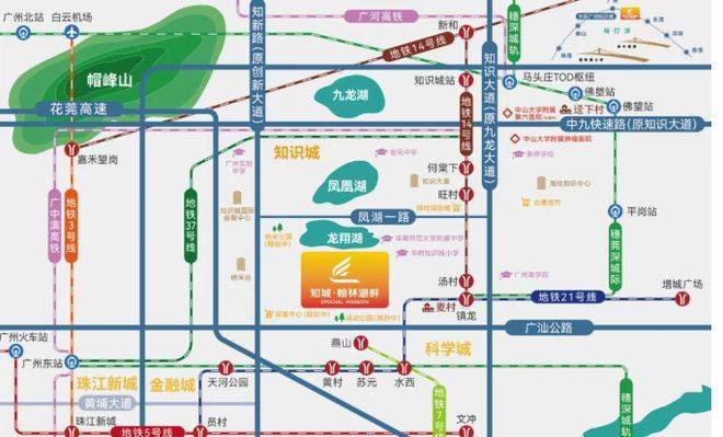 生活配套十分丰富。项目内部打造 2000 +㎡商业体 - 新知城,业主举步就能享受繁华。周边坐拥 30 万 +㎡商圈聚集地,像绿地缤纷城、合景悠方广场等大型综合体,吃喝玩乐一站式搞定。医疗资源也很充足,近享中山大学第六附属分院等十几所优质医疗机构,时刻守护家人健康。景观休闲方面也毫不逊色,有龙翔湖,规划新建调蓄面积大,项目尊享一线湖居生活;还有智慧图书馆,书籍可通借通还;更有 13 万㎡纳米公园和 2 万㎡健康公园,家门口就能满足休闲运动需求。
