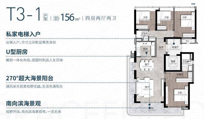 156㎡ 四房两厅两卫 户型(平层)