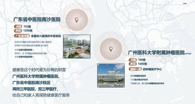 在健康保障方面,项目同样享有优越资源。整个南沙区正在构筑强大的医疗健康网络,规划及建设中包括中山大学附属第一医院南沙院区、广东省中医院南沙医院等多家三甲医院,其中更规划建设2个国家医学中心(代表国内最高临床医疗水平)。这些顶尖医疗资源均位于车程便捷的范围内,为业主及家人的健康构筑了坚实的防护网,让品质生活无后顾之忧。