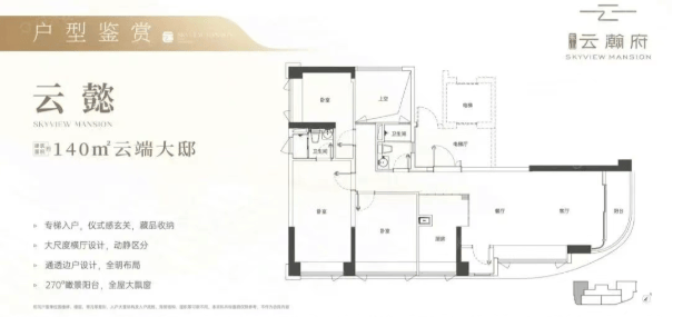 140㎡南向4房:六开间朝南,面宽突破17米,四面采光,单边户设计保障私密;