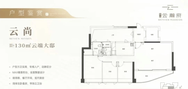 130-135㎡南向3+1房:四开间朝南,南向面宽超15米,+1多功能空间灵活百变;