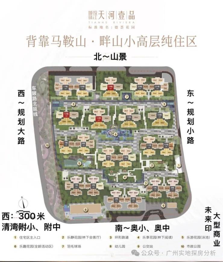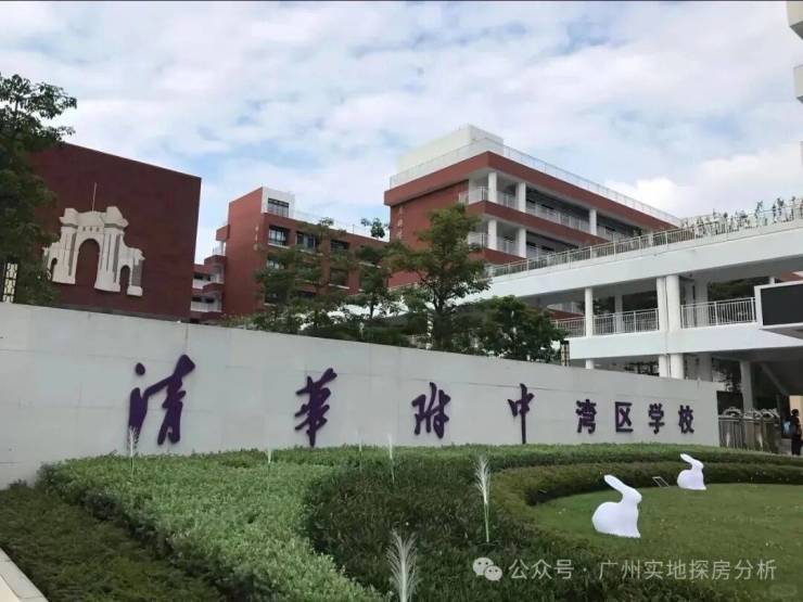 直线距离约300米有清华附中湾区学校(含小学初中、高中,已开学),南侧还有规划中的广州奥林匹克中学(45班)。