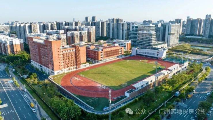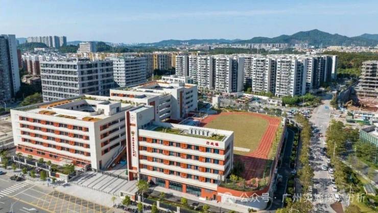 一所是公办九年制广州奥林匹克中学智谷校区,就在小区对面,学校将在2025年9月开学,招收4个班,项目业主只要满足人户一致都能入读这所新学校。