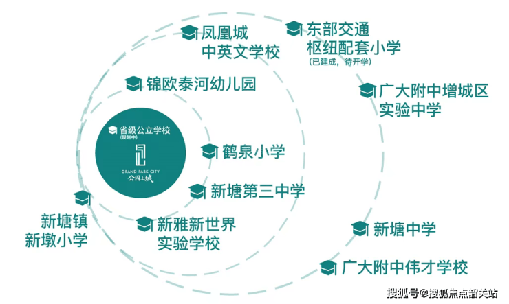 项目对口的新塘三中已加入增城广附教育集团,同时获得广州七中集团合作帮扶,可共享优质师资力量与教学管理资源,为孩子的初中教育提供有力保障,构建起 “幼儿园 - 小学 - 初中” 9 年一贯制教育体系。