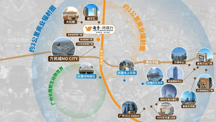 广州南站商务圈:辐射高铁经济,未来潜力可观。