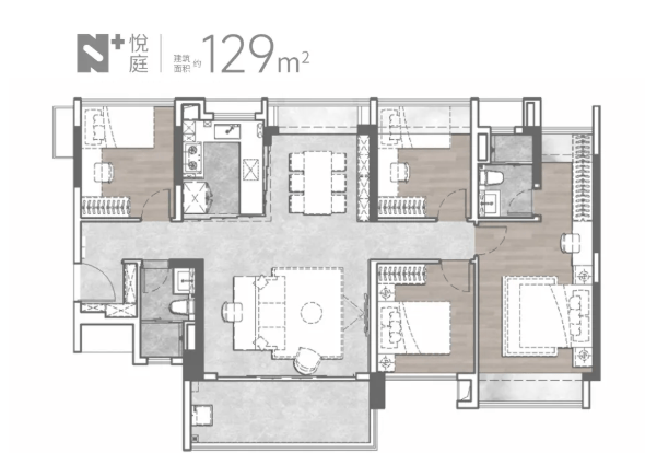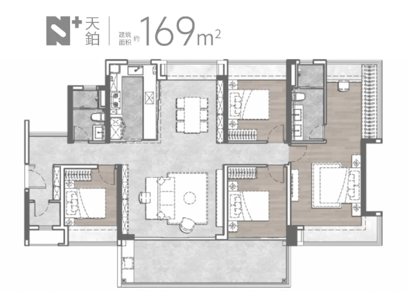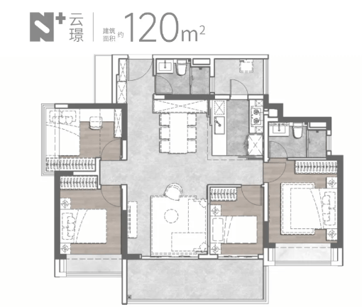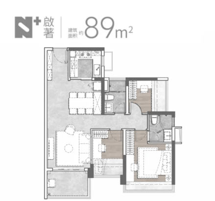 越秀·天悦云啟首推建面约89–169㎡三至四房,户型设计极具前瞻性。采用LDKB一体化公区(客厅L、餐厅D、厨房K、阳台B全打通),打破空间隔阂,增强家庭互动与采光通风。更引入“X空间”概念——客厅旁次卧采用非承重墙设计,业主可根据需求自由拓展,灵活应对不同生活阶段。