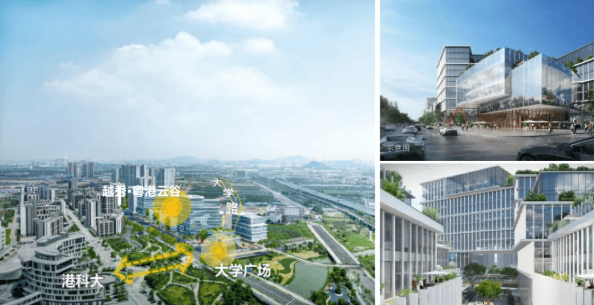 一个广场:大学广场呼应港科大红鸟广场,强化门户形象,成为三区融合起点;