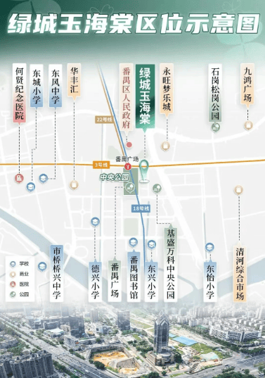 项目紧邻番禺广场地铁站 E 口,这里是3 号线、18 号线、22 号线、3 号线东延段及 17 号线(规划中) 的交汇枢纽,堪称广州南部的 “轨道交通黄金链”。3 号线直达珠江新城、天河商圈;18 号线作为 “最快地铁”,一站到琶洲,两站抵珠江新城;22 号线串联白鹅潭、番禺广场等核心板块,轻松实现跨区通勤。