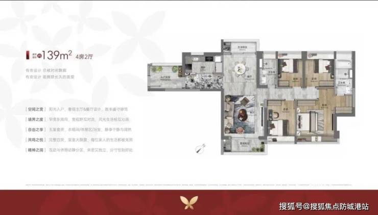 128㎡双景阔绰平层:五开间朝南,客厅直出阳台,主卧套房带衣帽间,总价约510万元。