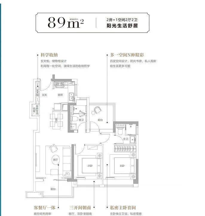 好产品:88-125㎡三至四房全南向户型,江景无遮挡,采光通风佳,细节配置智能化、实用率高。