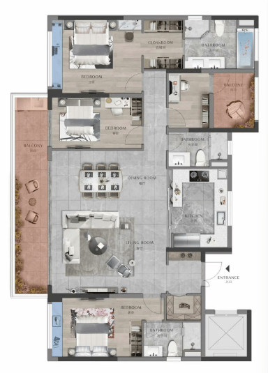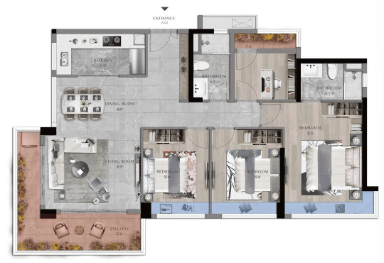 项目采用全新5A+健康家居产品力体系,涵盖健康居住、社区邻里、物业服务、品质匠心与城市配套五大维度。配备中央空调、智能安防系统、人脸识别等科技设施,打造健康智慧社区。户型涵盖约105-345平方米的多元产品,从三房到四房,满足不同家庭需求。所有户型均注重采光通风与空间利用,配备阔景阳台、U型厨房、独立玄关等人性化设计,兼顾实用性与舒适度。二期【天御】更推出一梯一户的跃级产品,赋予居者专属尊崇的归家礼遇。