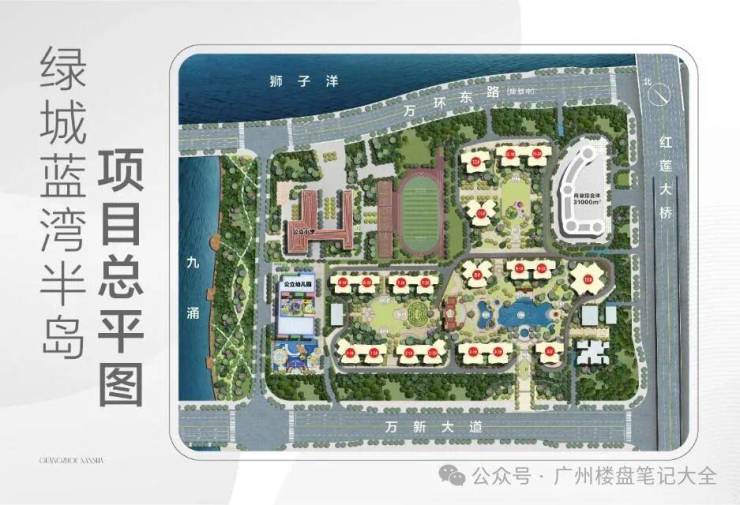 绿城·蓝湾半岛总占地面积约18.7万㎡,总建筑面积约68.5万㎡,是南沙万顷沙板块少有的大型品质社区,规划32栋18-33层高层住宅,总户数5236户,容积率2.8,绿化率35%,采用围合式布局与低密高绿规划,最大化保障业主采光、通风与观景视野。项目楼栋采用错落式围合布局,形成多个独立景观庭院,最大楼间距达70米,最小楼间距达45米,确保每一户都能拥有充足的阳光与开阔的视野,避免楼栋之间的遮挡,提升居住舒适度;同时,围合式布局增强了社区的私密性与安全性,打造邻里和谐的居住氛围。