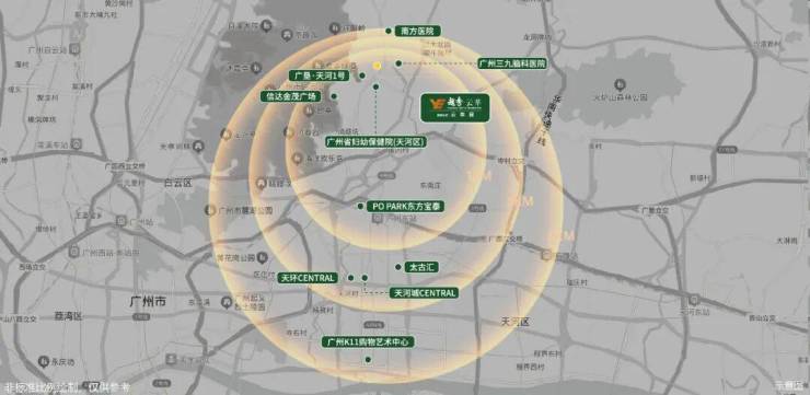 •直线距离约3公里三大医院:南方医科大学南方医院/三九脑科/省妇幼天河院区。