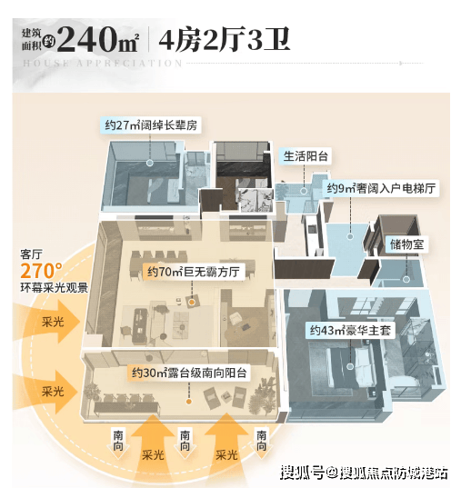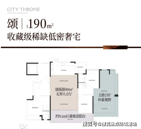 主力户型亮点突出:140㎡四房采用纯南向板楼设计,四开间朝南,配备约 8.4 米南向巨幕阳台、270° 飘窗,双南向套房,LDKG 宽厅达 34㎡,可容纳 8 人座大餐桌;240㎡千万级大平层为独栋板楼设计,专梯专户,标配约 9㎡奢阔入户电梯厅,户户三面赏景,直望白云山与中央园林;120-143㎡塔楼户型同样注重采光与视野,部分户型可眺望白云山景,空间布局方正,动静分区合理,精装交付标准涵盖品牌厨卫、华为鸿蒙智家系统,品质感拉满。