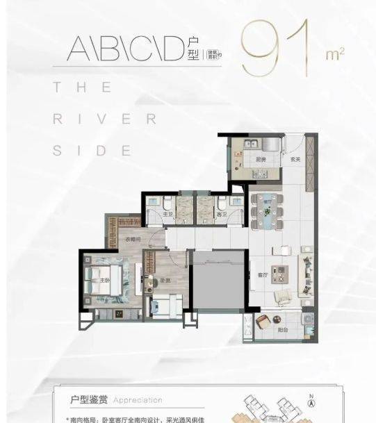 户型合理:主推 83 - 91㎡三房户型,全南向设计,保障充足采光与通风。部分户型配备阔景阳台,提升空间利用率,满足家庭居住需求。售楼处电话:4009909752。
