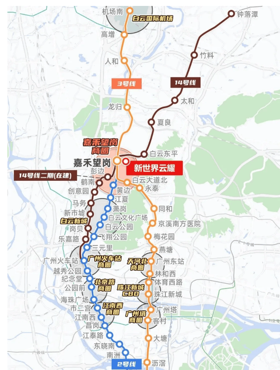 新世界云耀位于白云新城南北轴心的嘉禾望岗枢纽片区,是岭南新世界综合开发的第六期住宅组团,占据 12 万方中轴广场中心区位。作为广州北部重要交通枢纽,嘉禾望岗片区已形成 “地铁 + 快速路 + 机场” 的立体交通网络,周边写字楼、商业体密集,是白云区人口与产业的重要集聚地。项目所处位置既享成熟居住区的生活氛围,又能承接白云新城发展红利,区位价值不可替代。