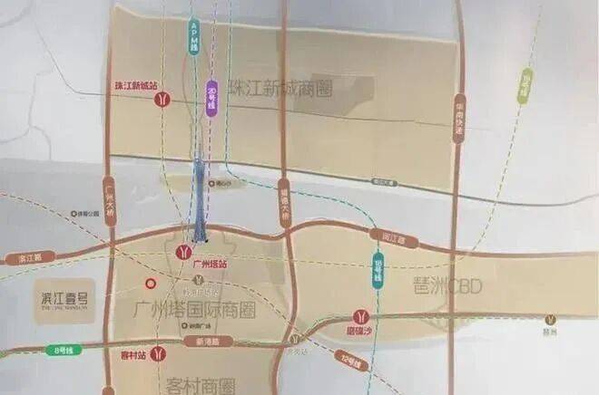 方圆美林滨江壹号位于广州市海珠区核心位置,紧邻珠江新城与琶洲CBD,地理位置优越。项目距离地铁3号线和8号线交汇的客村站仅约300米,步行几分钟即可抵达,通过地铁可快速通达珠江新城、天河、越秀等主要区域。此外,项目距离APM线广州塔站约900米,进一步提升了出行便利性。