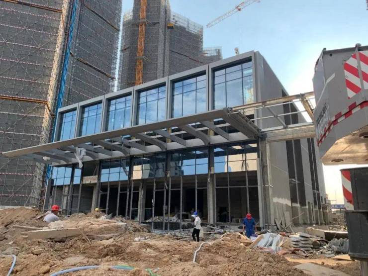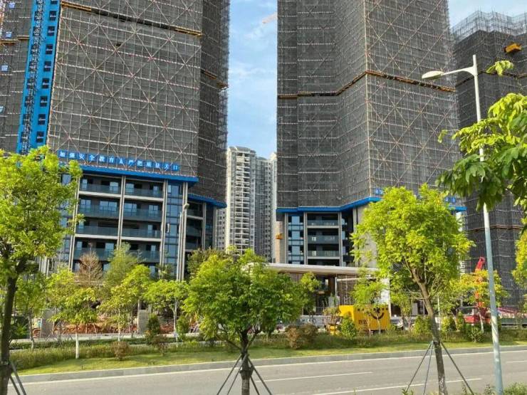 现在该项目的售楼部基本雏形已经建完,5栋住宅也建设到了尾声,其中部分住宅楼已经建设到26F,而且小区的大门也建设完毕。