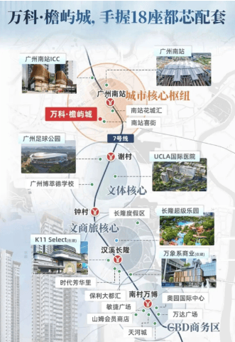 三地铁上盖:项目距离地铁2号线、7号线、22号线以及佛山2号线的广州南站仅约1.5公里,可通过楼巴或公交接驳,通勤便捷。