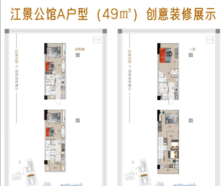 答:主推39-49㎡复式LOFT与双钥匙户型,4.5米层高,空间高拓实用。