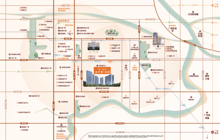 保利·和著傲立千灯湖与映月湖双核交汇处,这一得天独厚的地理位置,使其成为城市资源的集大成者。约3公里范围内,千灯湖与映月湖两大繁华商圈交相辉映,千灯湖环宇城、南海万达广场、南海万科广场、宜家等商业综合体林立,满足您购物、娱乐、休闲的全方位需求。无论是日常的柴米油盐,还是周末的时尚购物,都能在这里轻松实现,让您尽享都市生活的便捷与繁华。