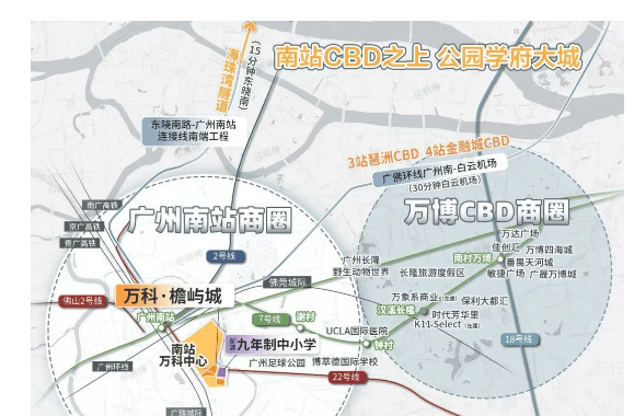 地段的价值在于连接的效率,万科·檐屿城坐拥广州南站这一超级枢纽,构建了罕见的“15轨立体交通网”。项目以年客流量1.7亿人次的广州南站为中枢,无缝接驳4条地铁、5条高铁及6条城轨。虽然项目距离地铁2号线、7号线及22号线的广州南站约1.5公里,但社区配备了便捷的楼巴接驳服务,轻松实现“地铁家门口”的通勤体验。随着2025年22号线后通段、广佛环线东环以及东晓南路-广州南站连接线的相继开通,项目将实现5站直达白鹅潭、4站抵达海珠芯、6站瞬达珠江新城,湾区一小时生活圈触手可及。特别是广佛环线东环,时速高达160公里,仅需3站即可到达琶洲金融城。这种多维立体的交通格局,不仅打破了物理空间的限制,更让业主能够高效链接广州各大核心商务区,真正实现了“工作在中心,生活在南站”的便捷模式。