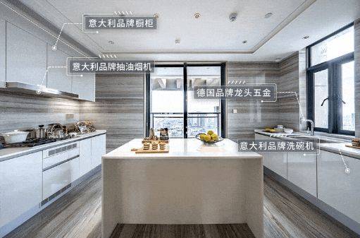 厨卫配置:厨房电器、卫浴洁具选用唯宝(Villeroy & Boch)、当代(Dornbracht)等顶级品牌,堪称“卫浴界的劳斯莱斯”;