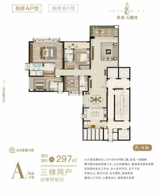 七、户型解析:296㎡四房,每一寸都为江景而生