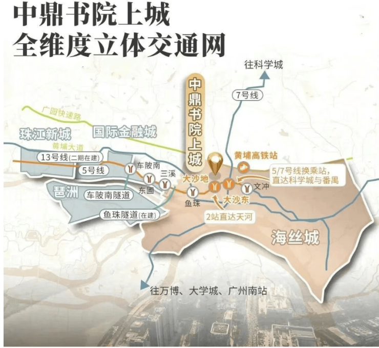 交通配套堪称 “主城范本”,步行约 600 米即达 5 号线大沙地站,无需换乘 2 站到三溪、8 站直达珠江新城、金融城,通勤效率碾压同板块楼盘;周边规划 7 号线、13 号线延长线,未来形成三地铁交汇格局,畅达天河、越秀、番禺等全域。自驾方面,北侧广园快速、南侧黄埔大道双主干道贯穿东西,15 分钟到琶洲、20 分钟到珠江新城,无缝衔接广州核心商圈;临近黄埔港、鱼珠高铁站,形成 “地铁 + 快速路 + 高铁 + 港口” 四维交通网,无论是日常通勤、跨城出行还是商务往来,都高效便捷,真正实现 “主城半小时生活圈”。