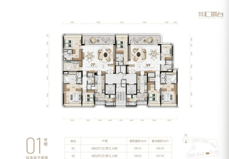 产品概况:14栋12层小高层,稀缺低密 【侨鑫保利·汇景台】由14栋12层的小高层建筑组成,容积率仅为1.94,是广州城央唯一的超低密绿色社区。这种低密度设计确保了每户都能享受到充足的采光和开阔的景观视野。项目共推出8类户型,涵盖123-352平方米三至五房,满足不同家庭结构的需求。