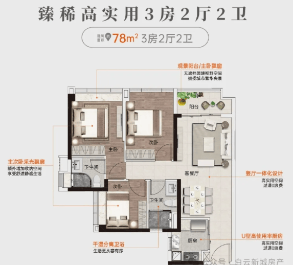 刚需友好户型,高实用率+低总价一步到位