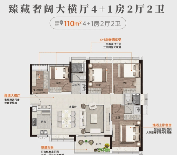 110㎡五房两卫:极致空间利用,轻松容纳三胎或大家庭结构,性价比远超同区竞品。