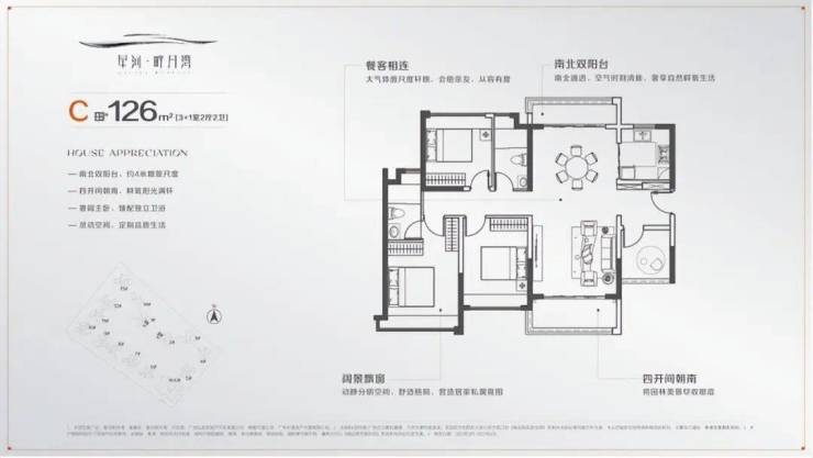相比之下,建面约126平方米的3+1房户型则更加宽敞明亮,适合大家庭或追求高品质生活的群体。该户型采用了独立入户系统,增强了居住的安全性和隐私性。四个开间朝南的设计,确保了充足的采光和通风效果,无论是在寒冷的冬季还是炎热的夏季,都能保持室内温度适宜。南北双阳台的设置,不仅扩大了室内外的交流空间,还能根据个人喜好灵活布置,如北阳台作为晾晒区,南阳台则可打造成休闲花园。主卧带有步入式衣帽间和独立卫生间,提升了主人的生活品质。