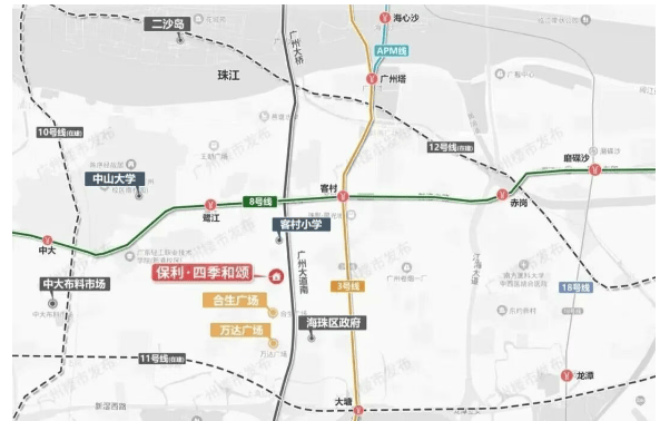 虽然步行至最近的8号线客村站或鹭江站约1.5公里,看似稍远,但项目真正的交通优势在于多维路网+地铁集群效应。自驾方面,出门即上广州大道南,5公里直达珠江新城CBD,11公里抵达琶洲会展及电商总部区,早高峰通勤效率极高。更值得强调的是,项目3公里范围内汇聚地铁3/8/10/11号线四线交汇,1站到广州塔、2站抵珠江新城、3站达琶洲西区,形成强大的轨道辐射力。对于依赖地铁的买家,可搭配共享单车或小区接驳,实际通勤体验远优于纸面距离。随着海珠环岛新型有轨电车及未来19号线规划推进,区域交通能级将持续跃升,当前“小瑕疵”正被快速弥补。