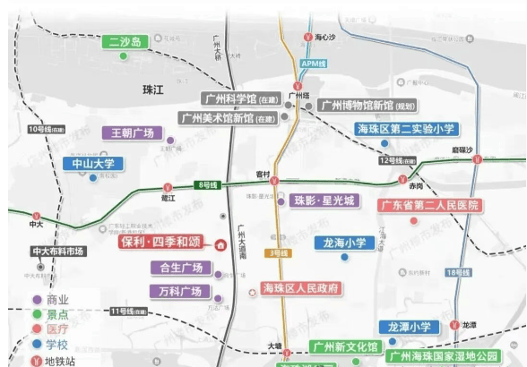 健康是高端居住的底线保障。保利四季和颂周边2公里内聚集7家公立医疗机构,包括三甲综合医院广东省第二人民医院、南方医科大学附属医院,以及海珠区属的人民医院、妇幼保健院、中医院等专科机构,形成“综合+专科+基层”三级医疗网络。尤其对有老人、幼儿的家庭,突发情况可快速响应。更值得一提的是,项目距中山一院(全国Top10)车程仅15分钟,顶级医疗资源触手可及。在后疫情时代,这种高密度、多层次的医疗配套,不仅是生活便利,更是安全感的重要来源。