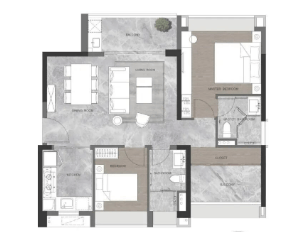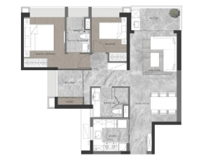 A2栋为34层高层,同样采用3梯5户布局,推出90平、92平、102平、107平户型,以三房刚需户型为主,总价门槛相对较低。户型设计注重空间实用性,宽景阳台与巨幕玻璃的搭配,最大化引入自然光线与室外景观。